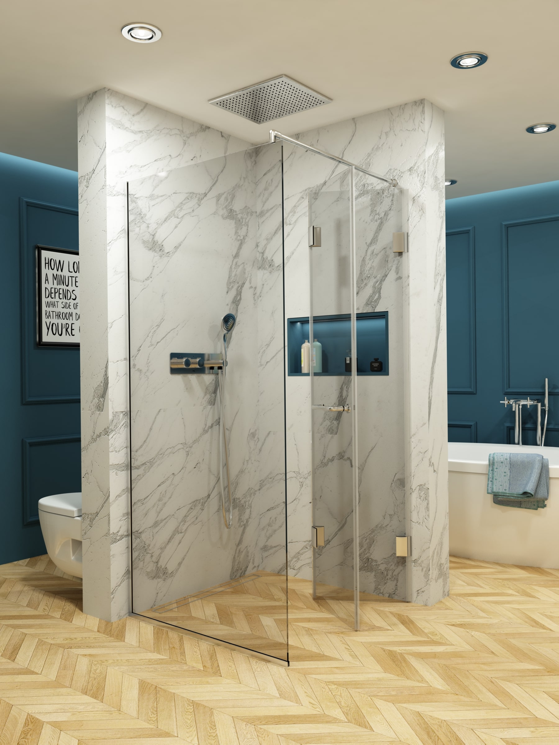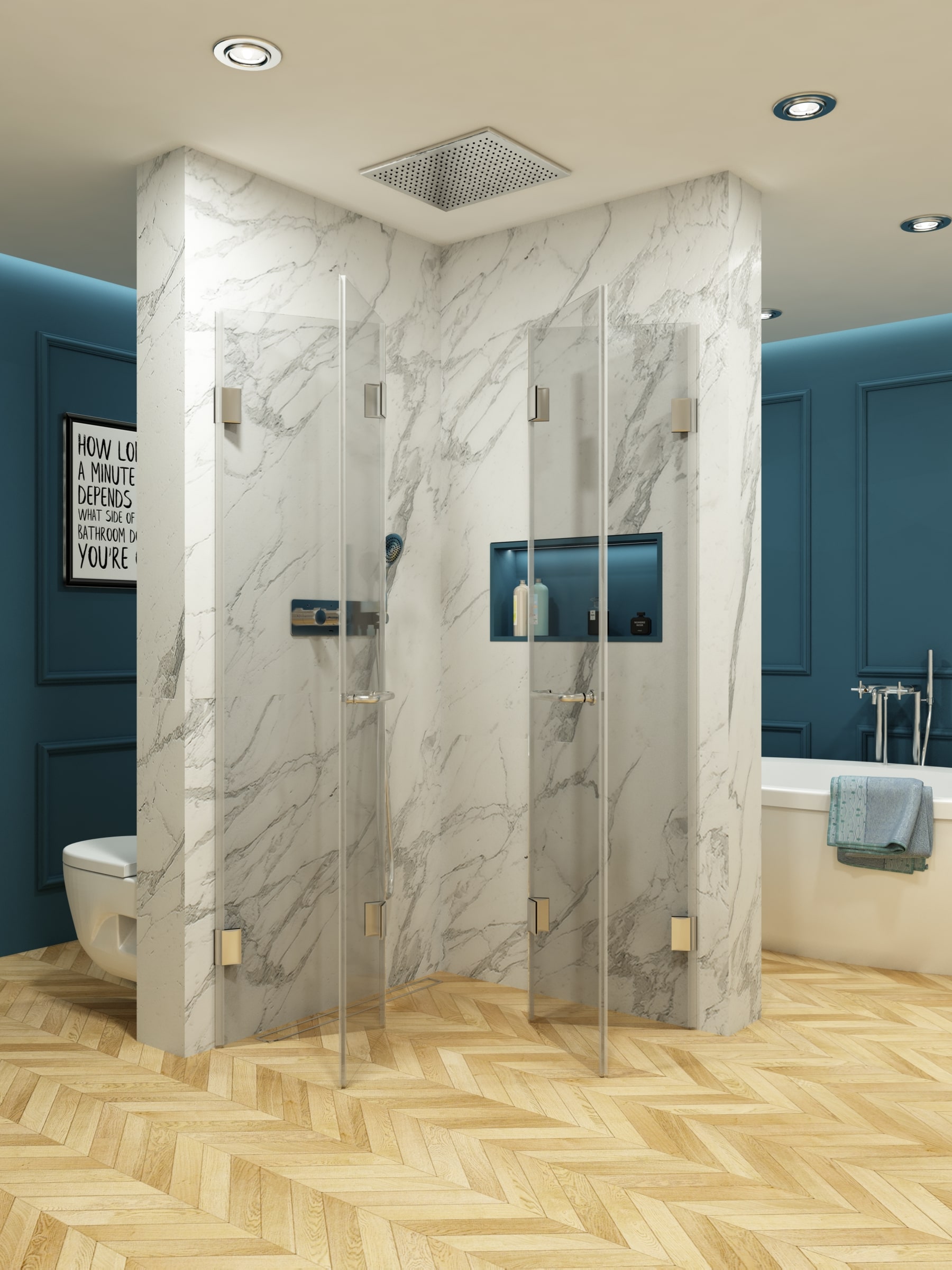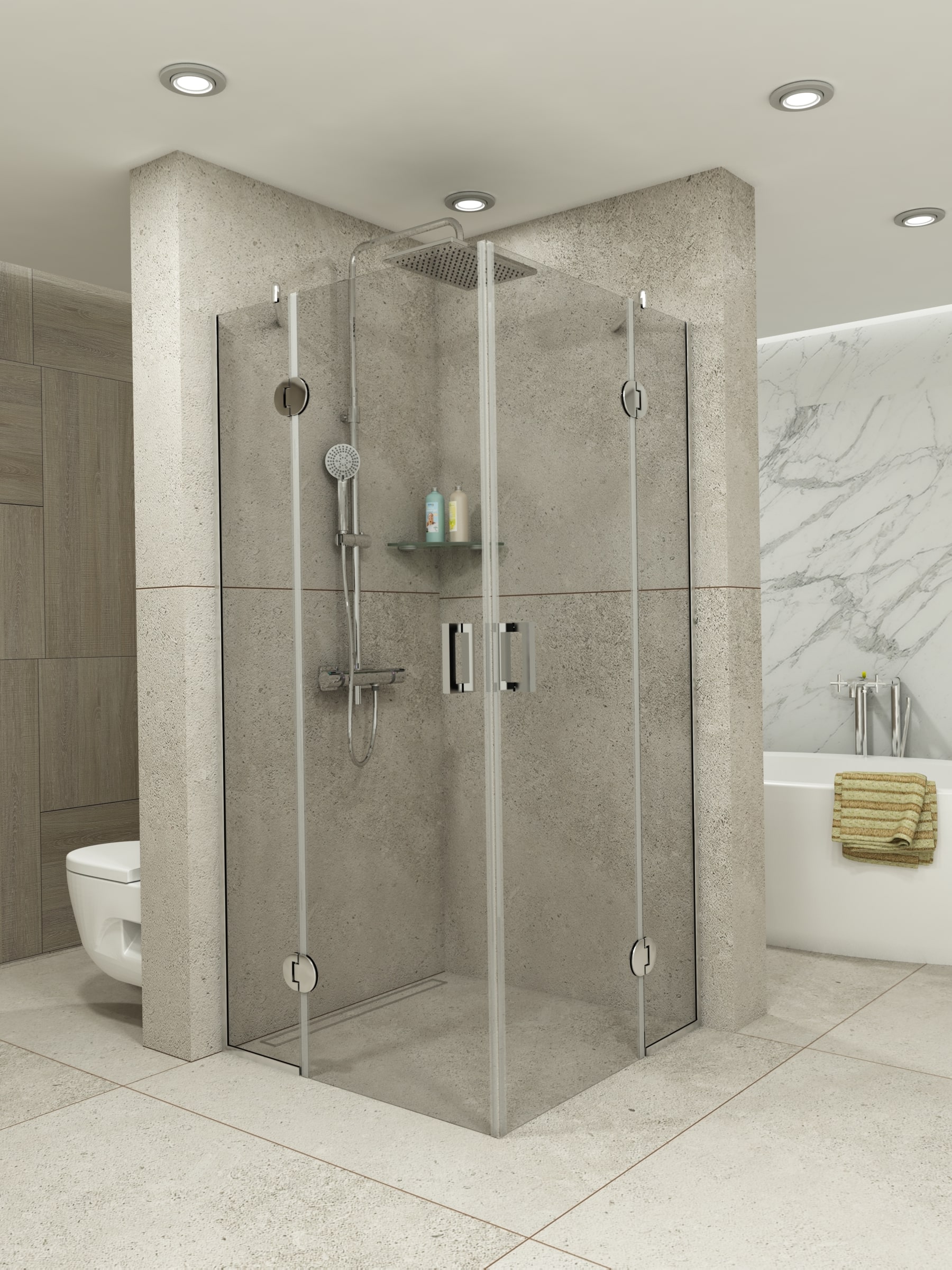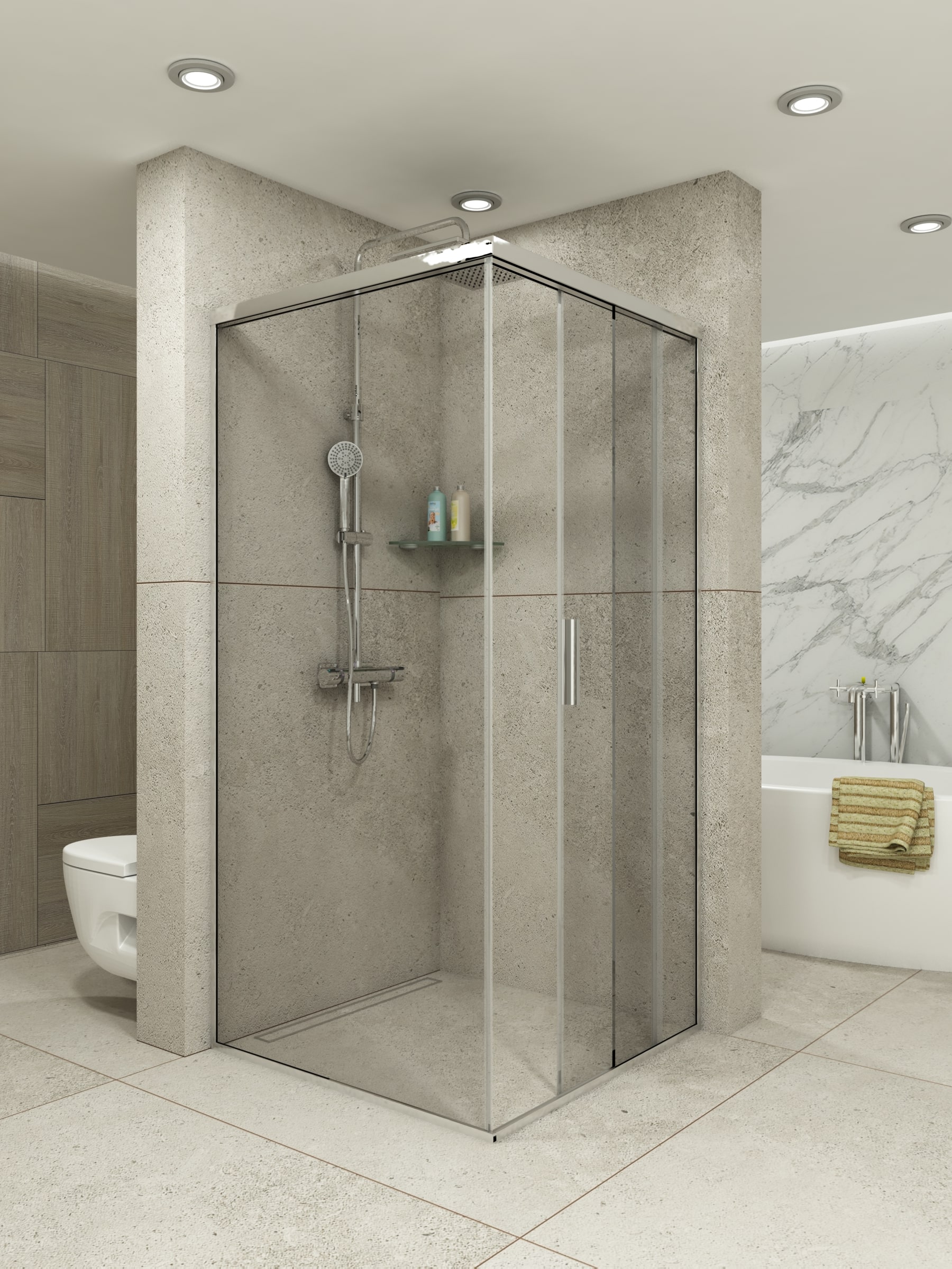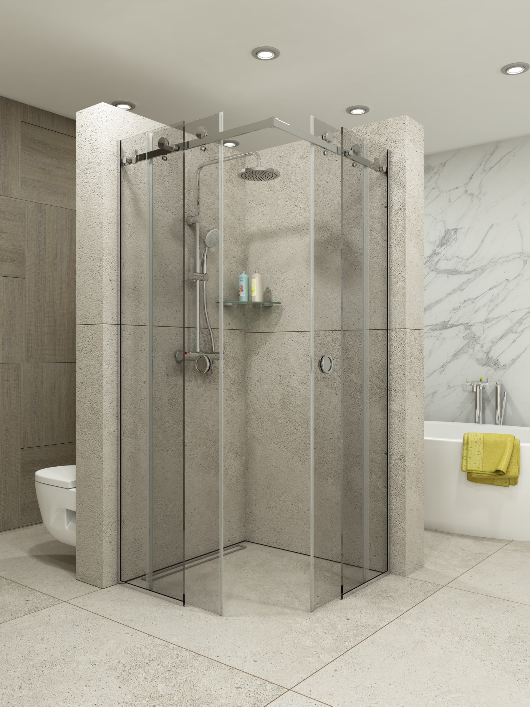 Предлагаме изработване както по стандартни размери, така и по индивидуални предпочитания и параметри на клиента. При нас можете да персонализирате душ кабината си като заложите на различни цветове на стъклото, разнообразите като добавите принт или се спрете на семпли фигурални елементи по ваш избор. За да се доближим максимално до стила, в който си представяте вашата баня, можем да ви помогнем с избора на обков, с който да завършим цялостния облик на душ кабината ви. Всички дръжки, стъклодържачи, релси, ролки за плъзгащи врати, обтегачи и други механизми могат да бъдат селектирани цветово спрямо желанията ви – хром, мат, злато, старо злато и други. Дебелината на стъклата, които предлагаме варира спрямо изискванията ви – от 6мм до 10мм, като проектирането може да се съобрази изцяло с формата, кривините и особеностите на банята, за да се получи визуално удовлетворение и скриване на недостатъците на помещението.