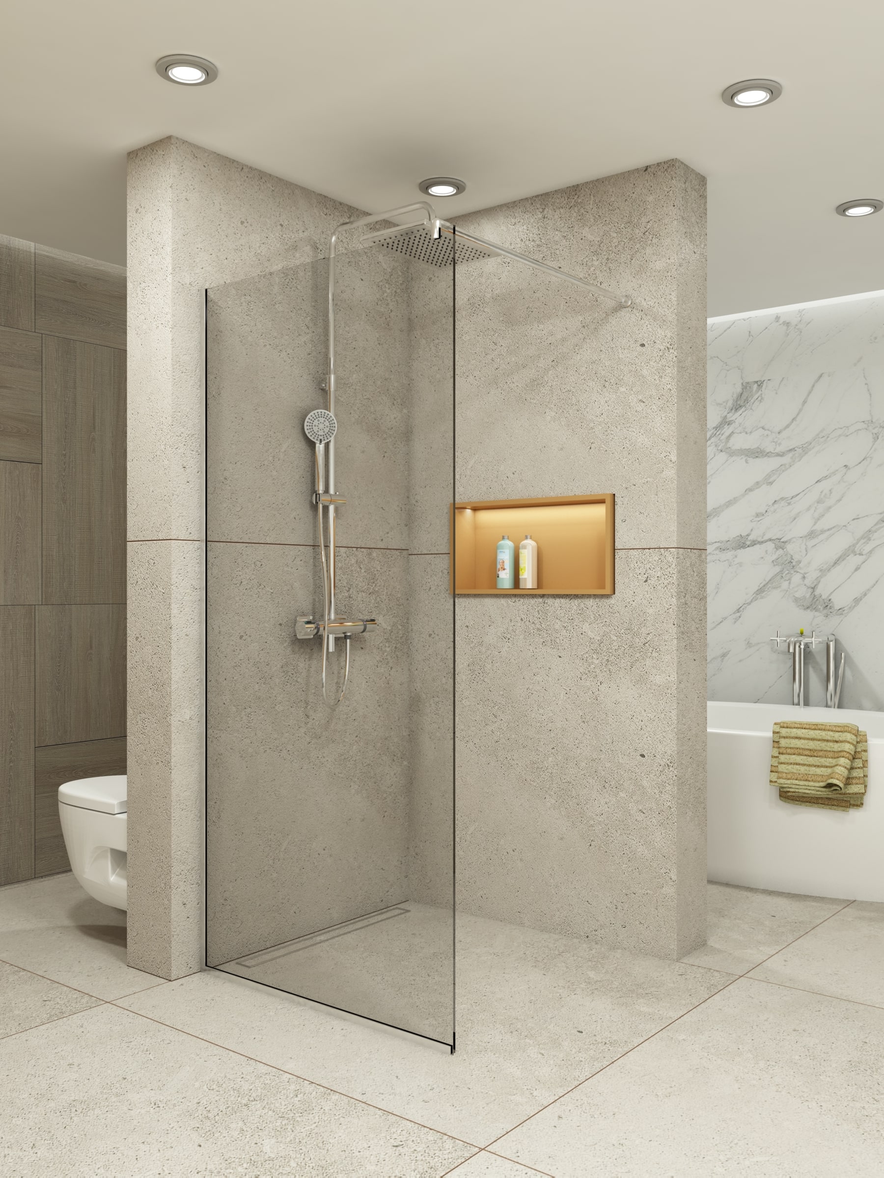 Модел GB001 представлява стационарно закалено стъкло, което се фиксира към стената и пода посредством алуминиев профил или чрез фиксатори в няколко точки. За да се oсигури максимална стабилност, стъклото се укрепва с лост, който може да бъде монтиран перпендикулярно или под ъгъл спрямо стъклото. Изпълнението може да бъде в различни размери и цветове, както на стъклото, така и на обкова. В таблицата в описанието ще намерите повече информация относно различните видове стъкла, размери и цени.