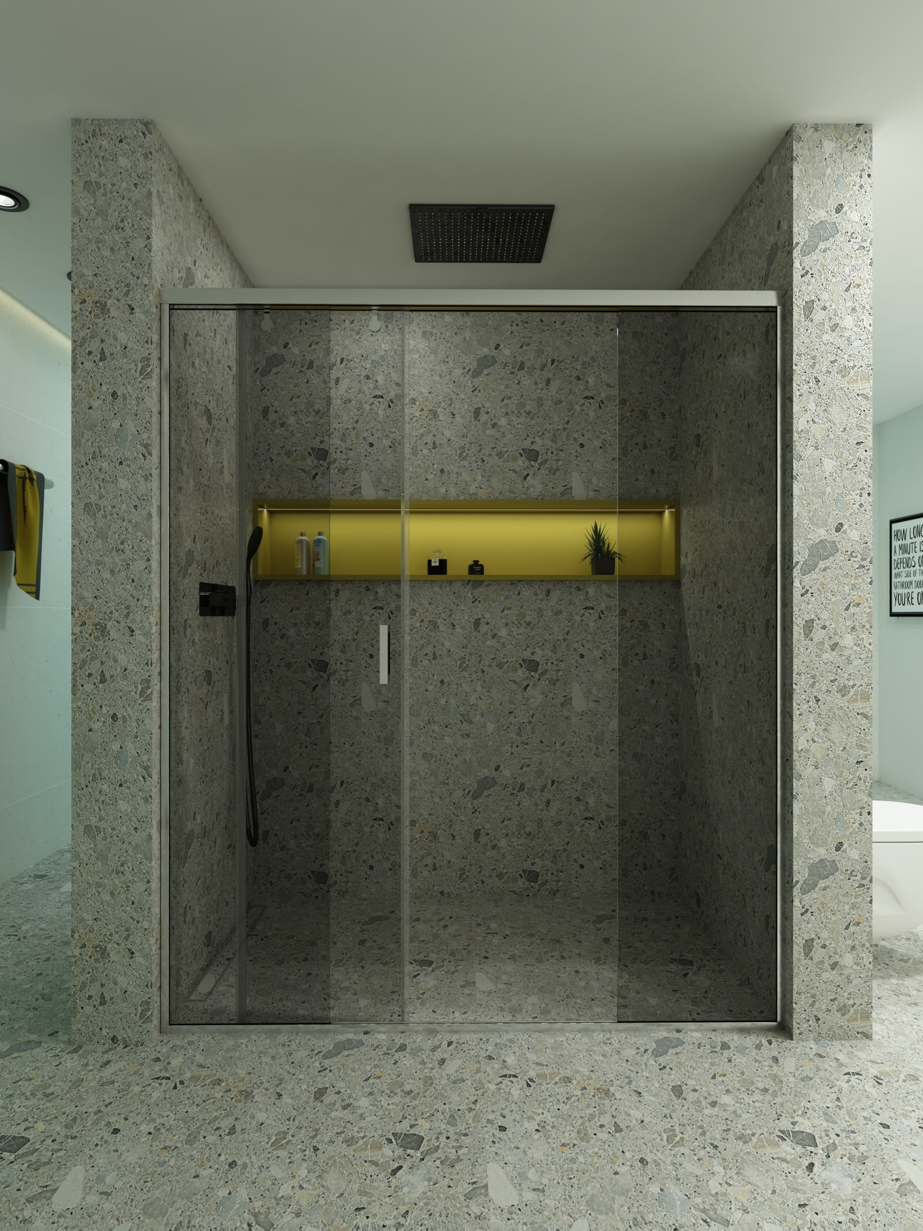 Душ кабина с релсово плъзгане – 1 бр. врата и 2 бр. фиксирани стъкла – модел: GB026